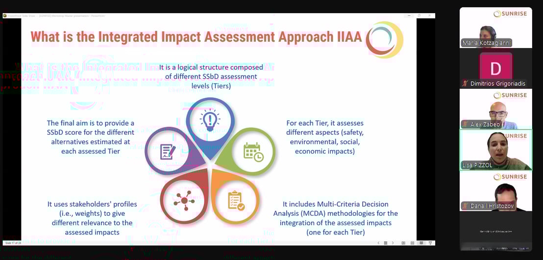 On 26 February 2025, SUNRISE hosted its first workshop on the Integrated Impact Assessment Approach (IIAA), a method for evaluating the safety, environmental, and sustainability impacts of advanced materials. Researchers, policymakers, and industry representatives explored the framework, debated priorities, and shaped a roadmap balancing innovation with responsibility. Interactive sessions ensured all voices contributed, while emerging questions highlighted opportunities for Safe and Sustainable by Design (SSbD). This workshop kicks off ongoing collaborative efforts, with surveys and interviews planned to capture broader stakeholder input.